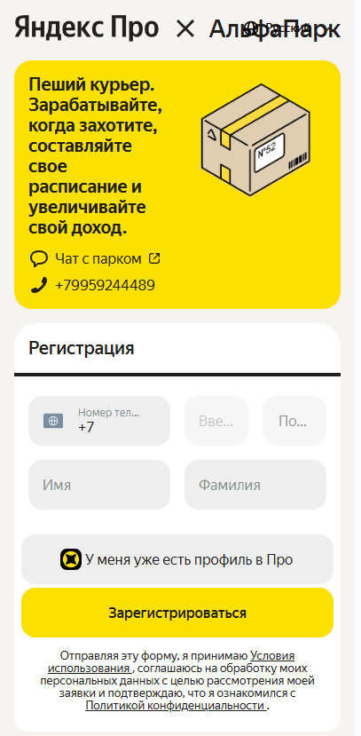 Моментальный вывод 24/7, средств через приложение Яндекс.Про